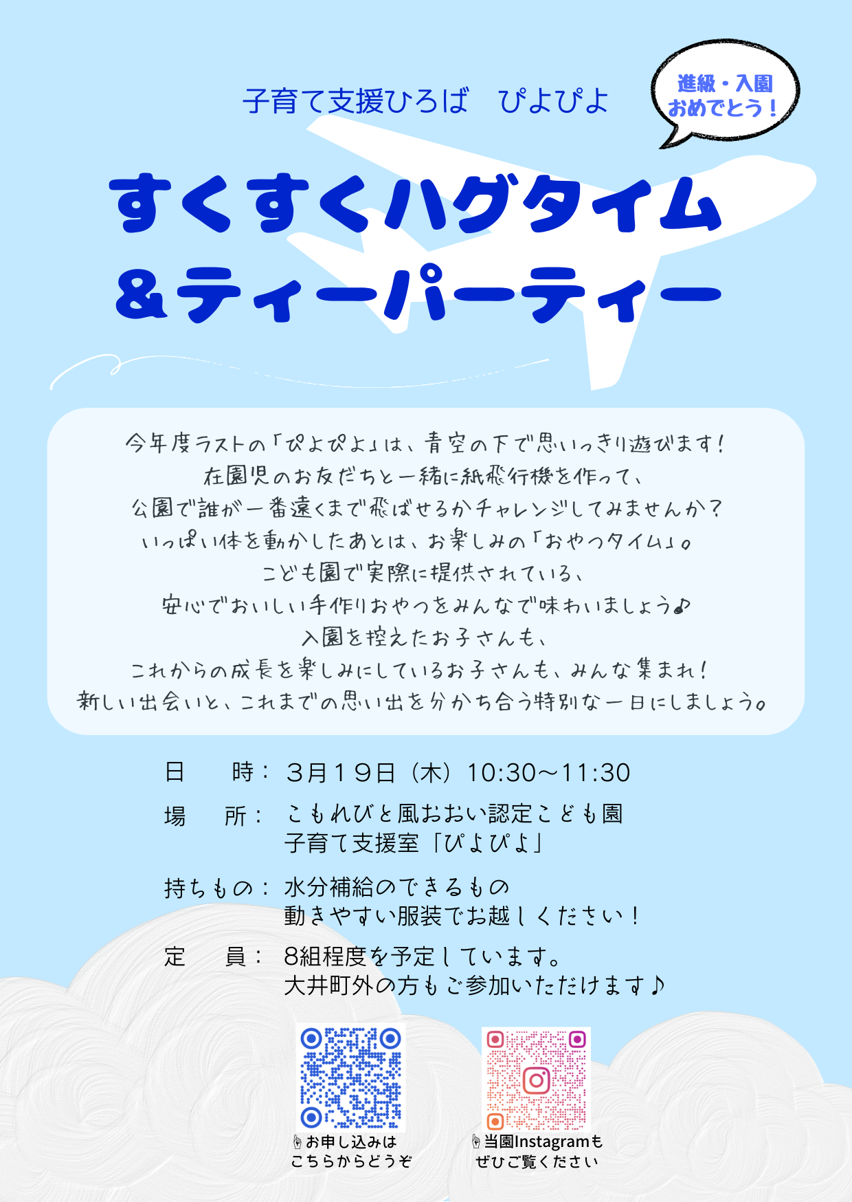 <すくすくハグタイム&ティーパーティ開催のお知らせ>