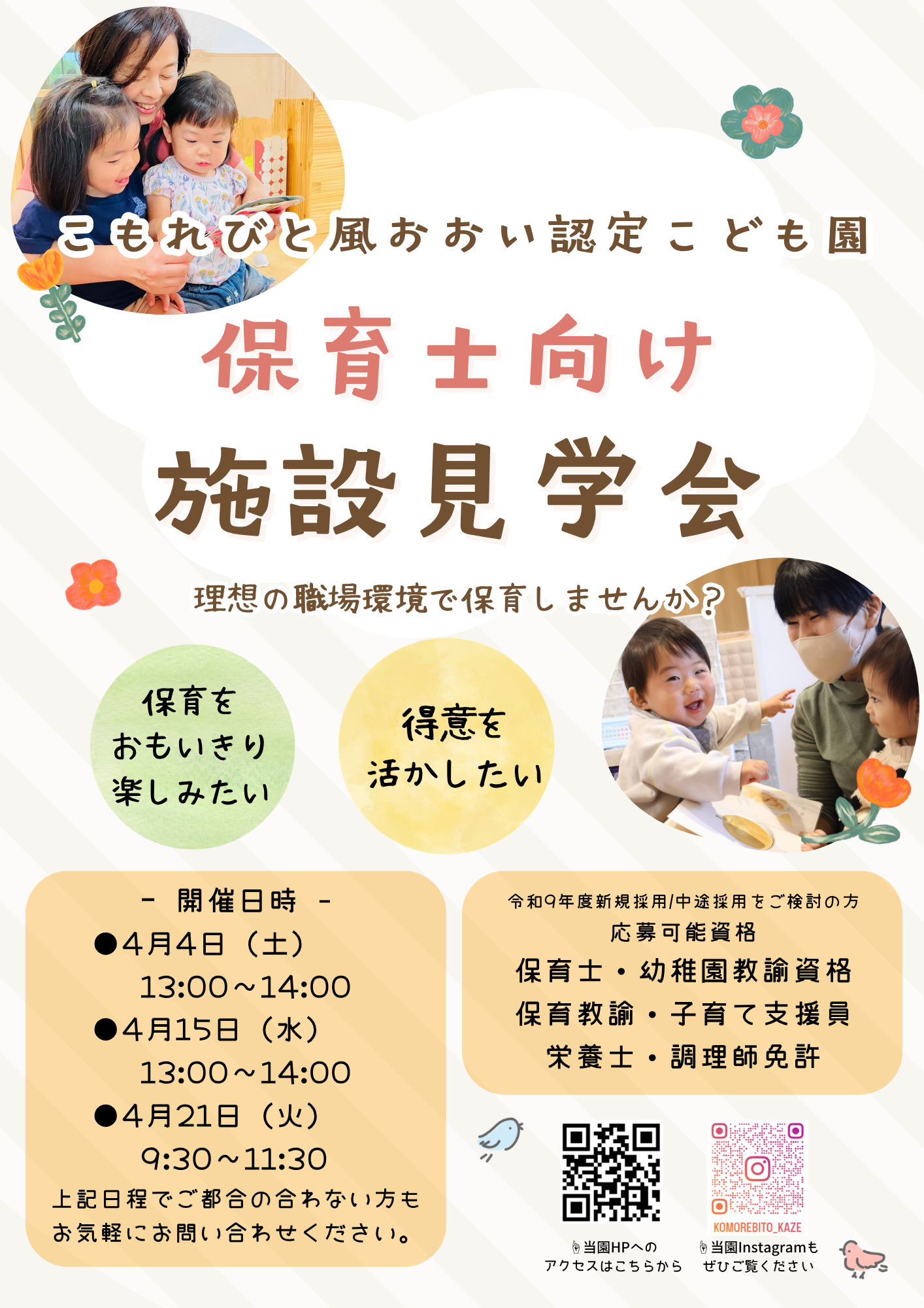 令和8年度第1回 【保育者向け】こども園見学会にぜひお越しください。