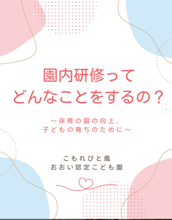 「園内研修」 研修はとても大切なこと。分かっているけれど日々忙しすぎて研修をする時間がない。また、時間に追われている中で園内研修を行うと「やらされている感」が出てきてしまうことも少なくありません。 しかし、園内研修は”ただ受講する”のではな...