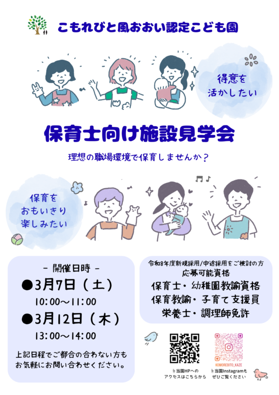 採用 3月7日・12日【保育者向け】こども園見学会を開催いたします。