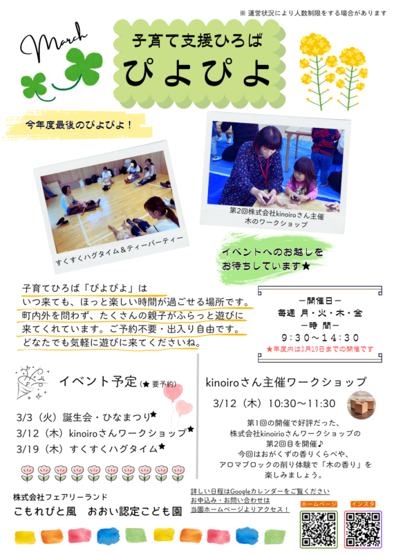 子育てひろば 3月19日(木)すくすくハグタイム&ティーパーティのお知らせ