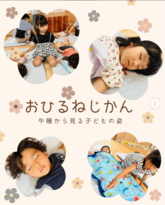2.3歳児クラスの子どもたちはお兄さんお姉さんのことが大好き♡「今日もお兄さんお姉さん来てくれる!?」と毎日寝かしつけの時間を心待ちにしています。お兄さんお姉さんには特別な力があるようで、「あれ!?○○ちゃん、いつもより眠るのが早い‥!?」なんてことも。笑