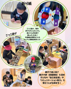 こもれびと風では「保育参観」ではなく「保育参加」として。保護者の方も一緒に参加して楽しめる、たくさんのコーナーを用意しています。