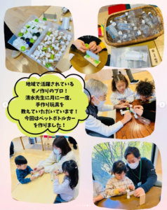 また、地域で活躍されているモノ作りのプロである清水先生との製作も大盛り上がりで、ペットボトルカーは大人気でした!