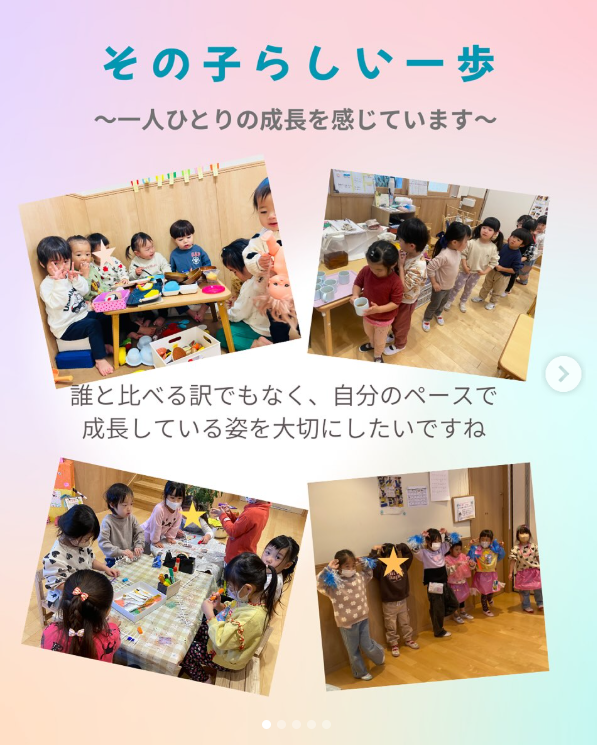 どの成長も、どの歩みも、その子にとって大切な一歩だと考えています。子どもたちが今日はどんな姿を見せてくれるのか毎日が発見です。