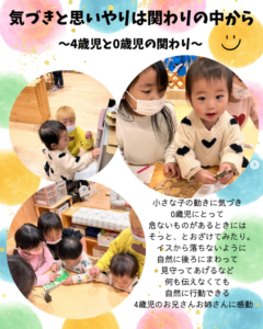 ※めばえ組(0歳児)、はな組(4歳児)です。